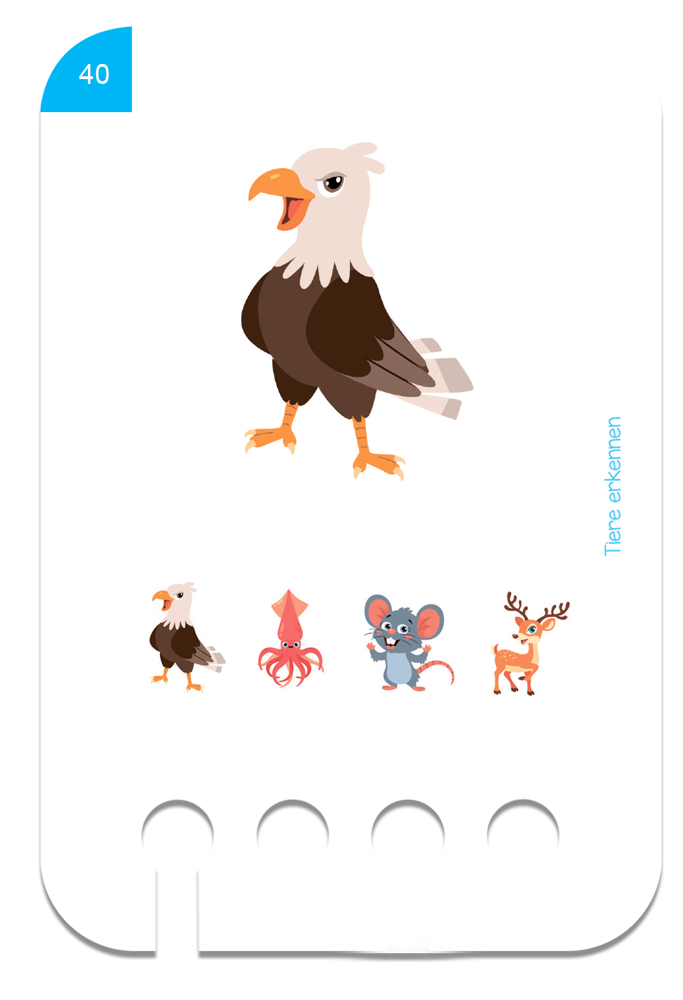 Kartensatz für den Lochkasten. Enthält 24 doppelseitig bedruckte Lernkarten mit insgesamt 48 Übungen. Für Kinder ab 2 Jahren geeignet.