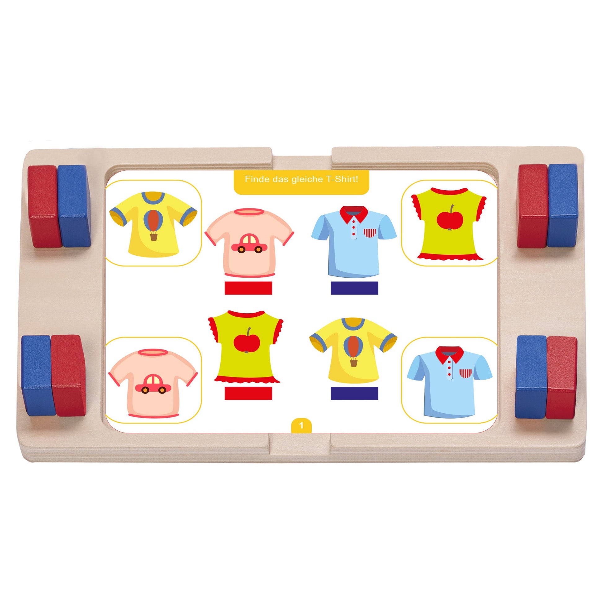 Dieses Set beinhaltet den Foxino Holzrahmen mit dem Kartensatz "Was ziehe Ich an?"