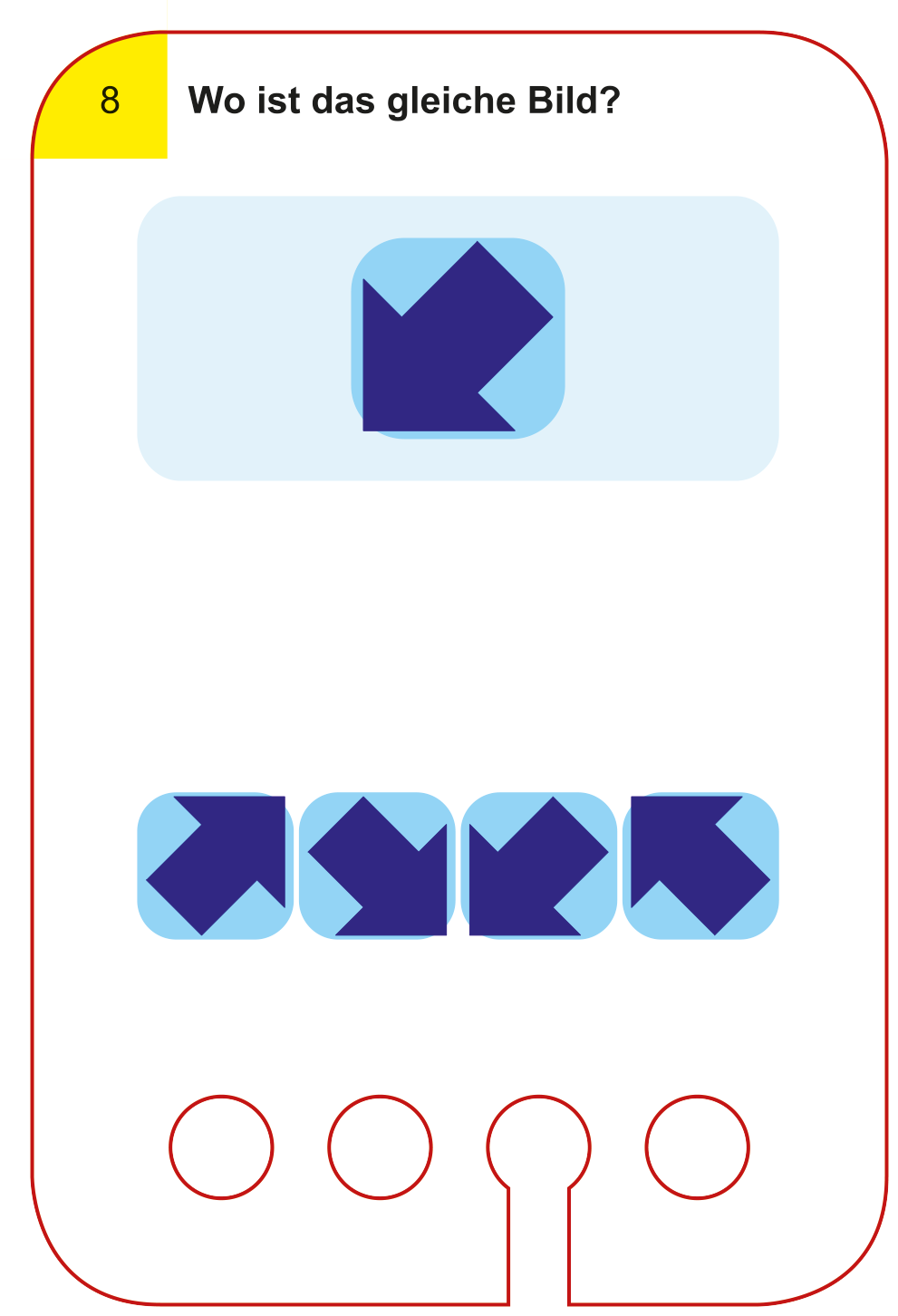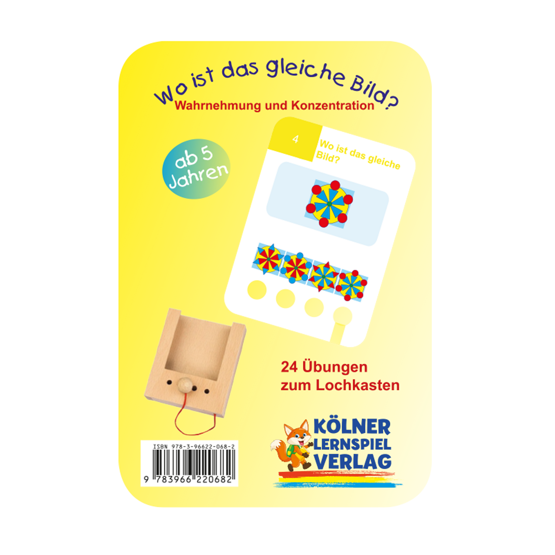 Die Lochkasten Übungskarten sind auf der Vorderseite auf deutsch und auf der Rückseite auf englisch beschriftet.