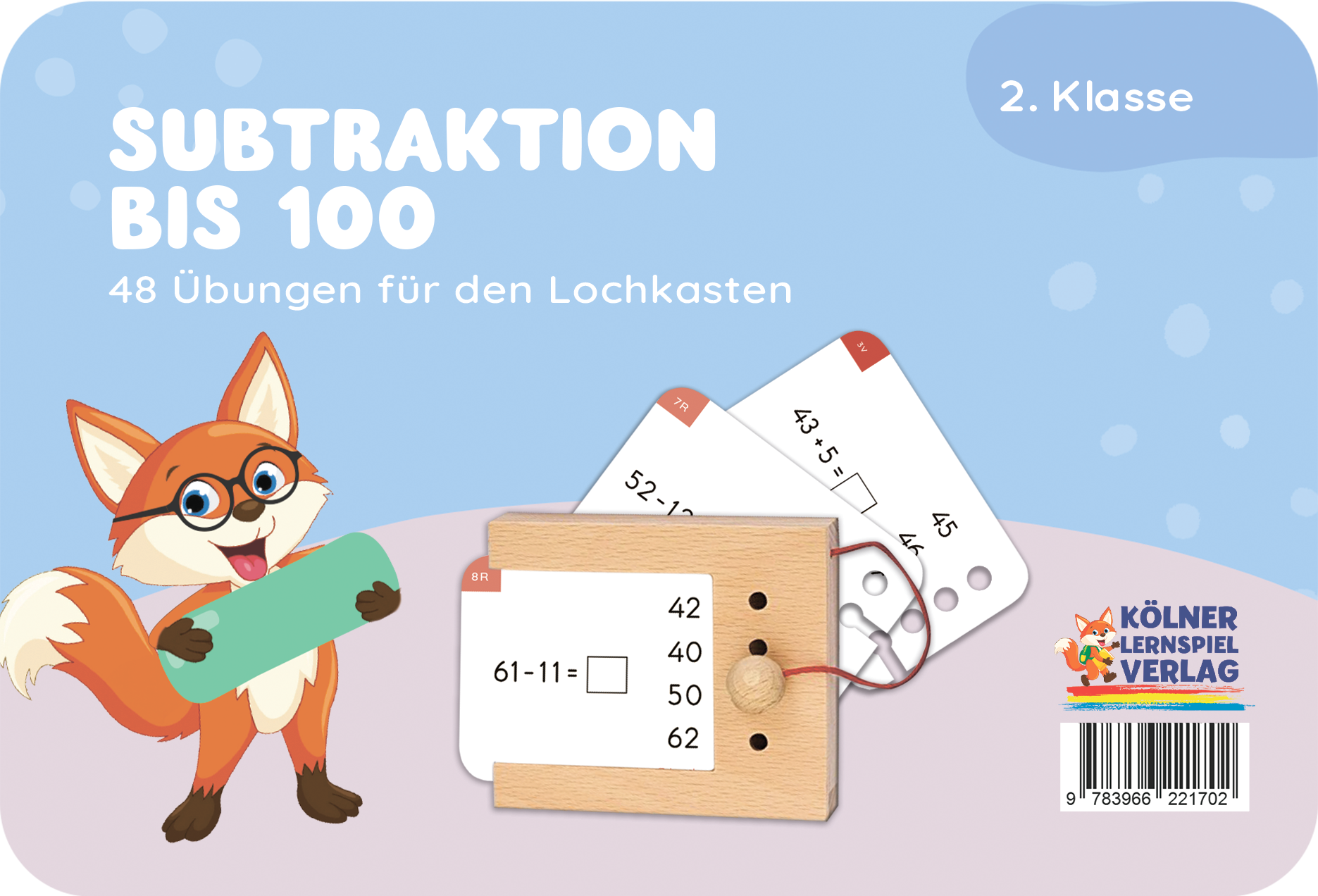 Kartensatz für den Lochkasten. Enthält 24 doppelseitig bedruckte Lernkarten mit insgesamt 48 abwechslungsreichen Übungen. Speziell für die 2. Klasse konzipiert und ideal für Kinder im Alter von 7-8 Jahren.